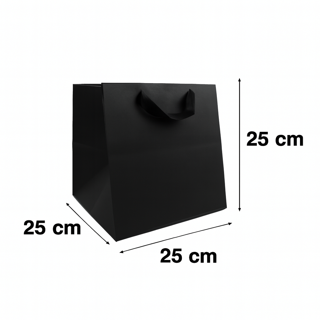 thick paper bags with handle-black-(25x25x25cm)-12pcs