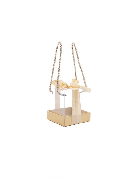 clear box with rope handle and ribbon-(9x9x9cm)-12pcs-gold