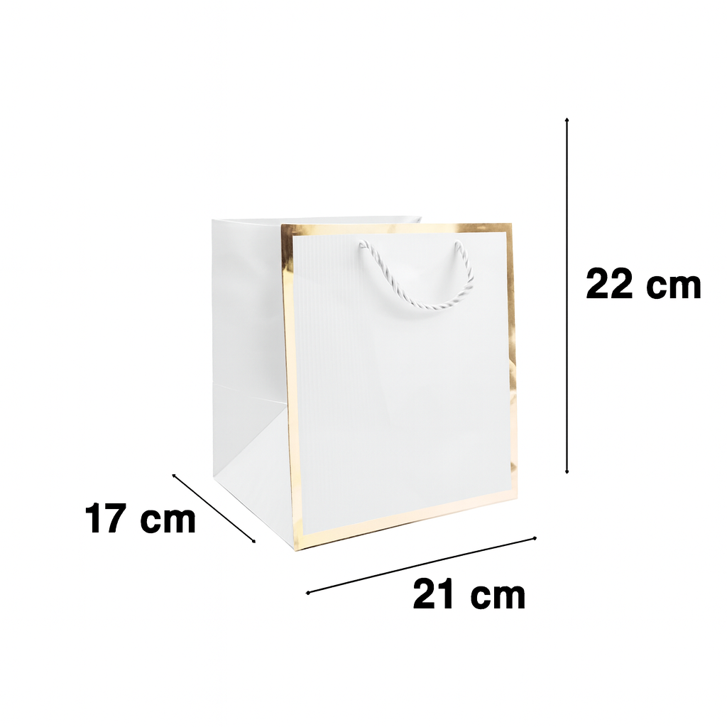 Luxury thick gift paper bags-grey-gold border -(17x22x21cm)-12pcs